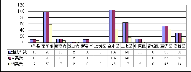 市本级上报16批次,用地总面积839.8607公顷,同比增加404.82%,环比下降92.56 %,其中占用耕地380.6348公顷;中牟县上报34批次,用地总面积1173.1592公顷,同比增加84.40 %,环比增加46.00 %,其中占用耕地800.8785公顷,同比增加136.77 %,环比增加52.95 %;荥阳市上报4批次,用地总面积130.2869公顷,同比下降14.15 %,环比下降100.00%,其中占用耕地117.6198公顷,同比增加422.81%,环比下降100.00%;新郑市上报16批次,用地总面积598.3854公顷,同比增加131.85 %,环比下降60.79 %,其中占用耕地364.8917公顷,同比增加105.03 %,环比下降47.85 %;登封市上报4批次,用地总面积44.0373公顷,同比下降64.77 %,其中占用耕地19.5514公顷,同比下降74.22 %;新密市上报9批次,用地总面积229.366公顷,同比增加1017.71%,其中占用耕地163.9353公顷。同比增加2959.69%。